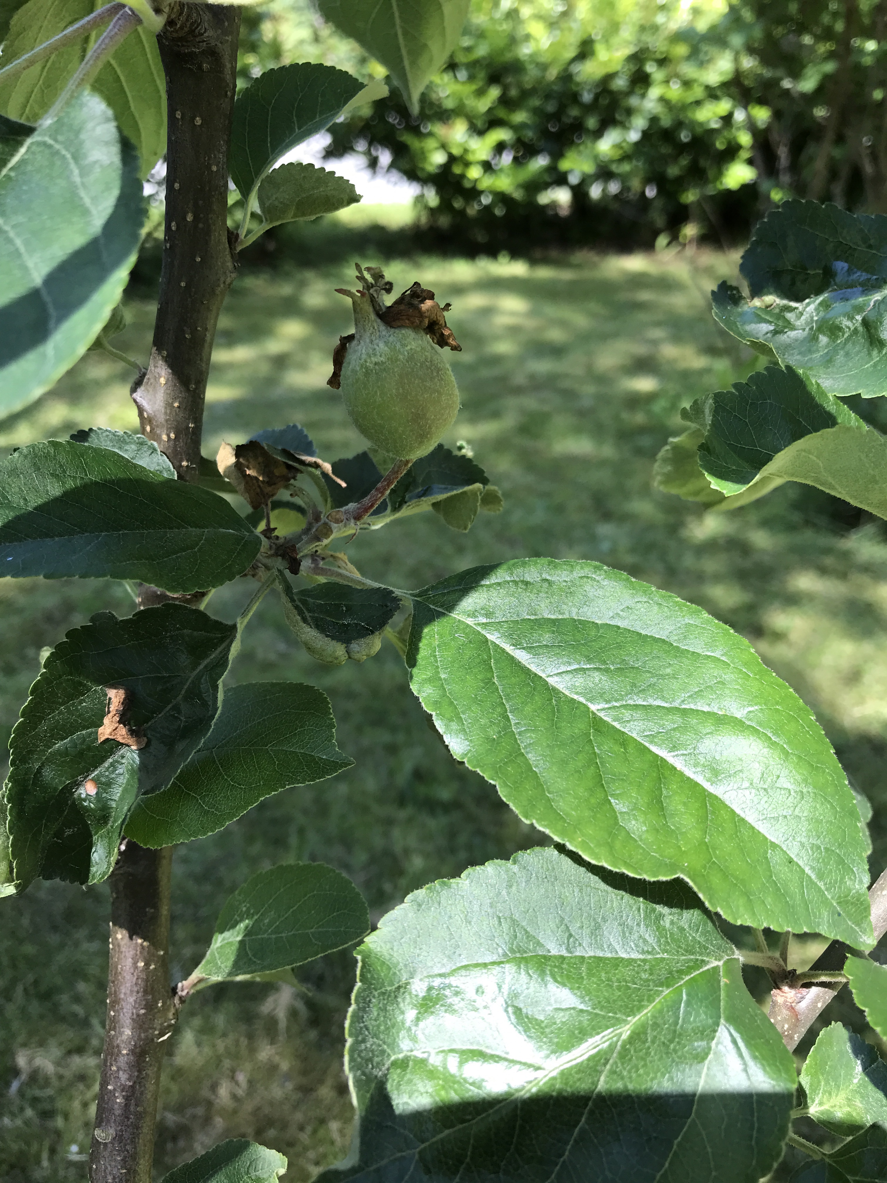 Det samme er det med epletreet. Det ene eplet henger der så lite og grønt, skal jeg måtte vente helt til høsten før det kan plukkes ned?